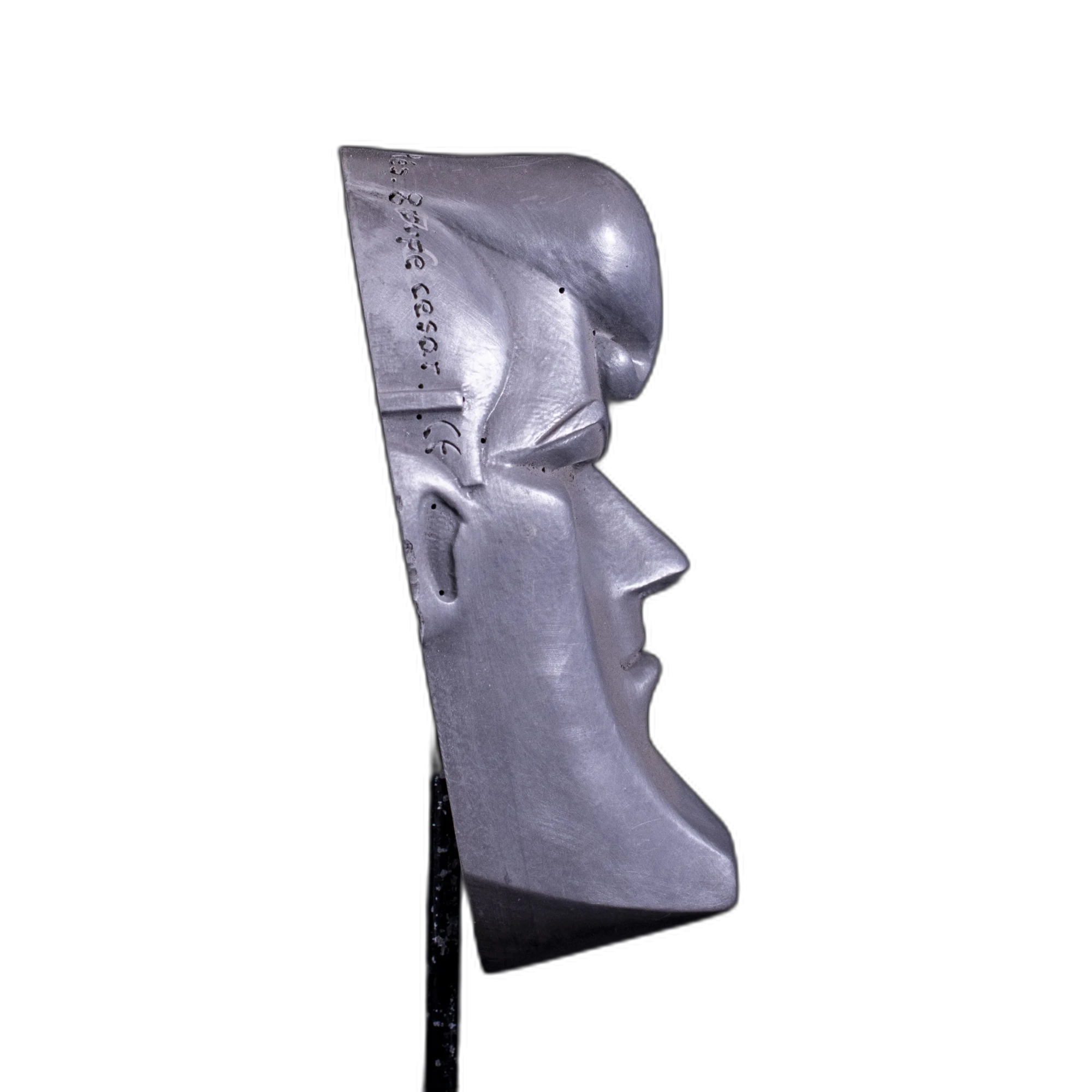 Moule en aluminium résiné moulée à chaud. Pièce montée sur un piétement en métal noir laqué.